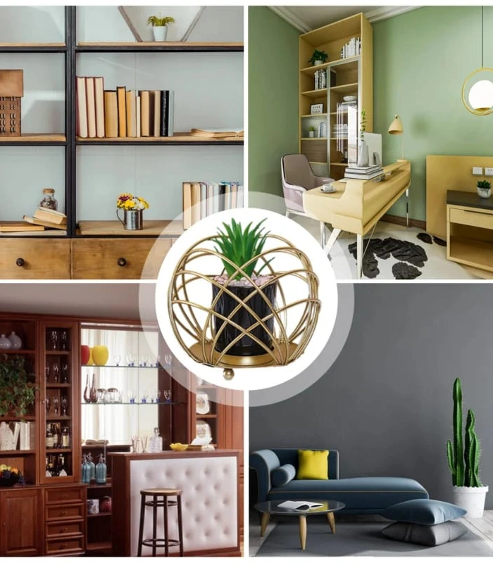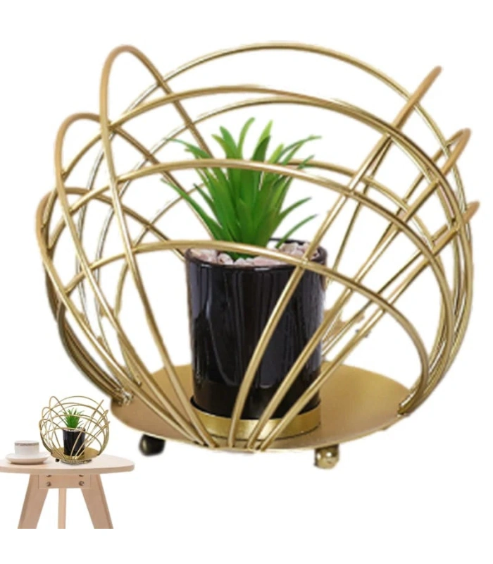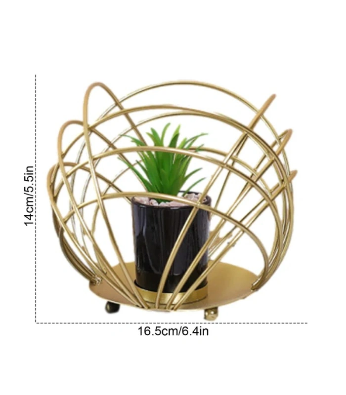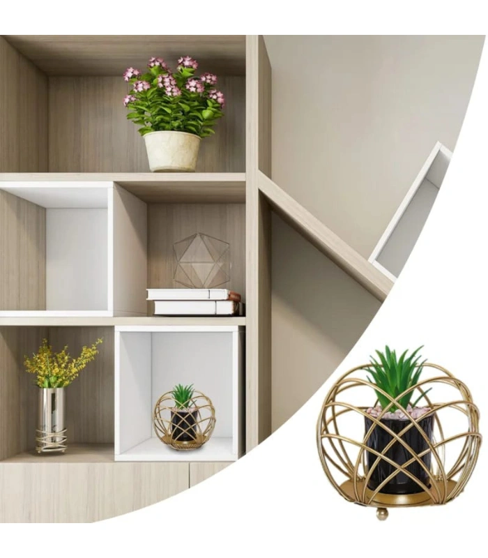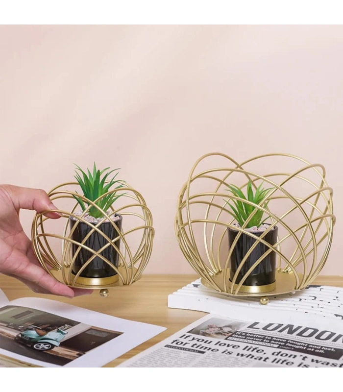 MULTIPURPOSE SPHERICAL GOLDEN METAL ROOM DECORATION ITEM WITH ARTIFICIAL FLOWER SUCCULENT PLANTER 2 POT STAND
